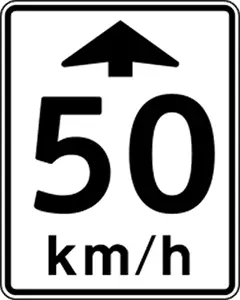 Maximum speed of 50 km/hour from traffic signal ahead